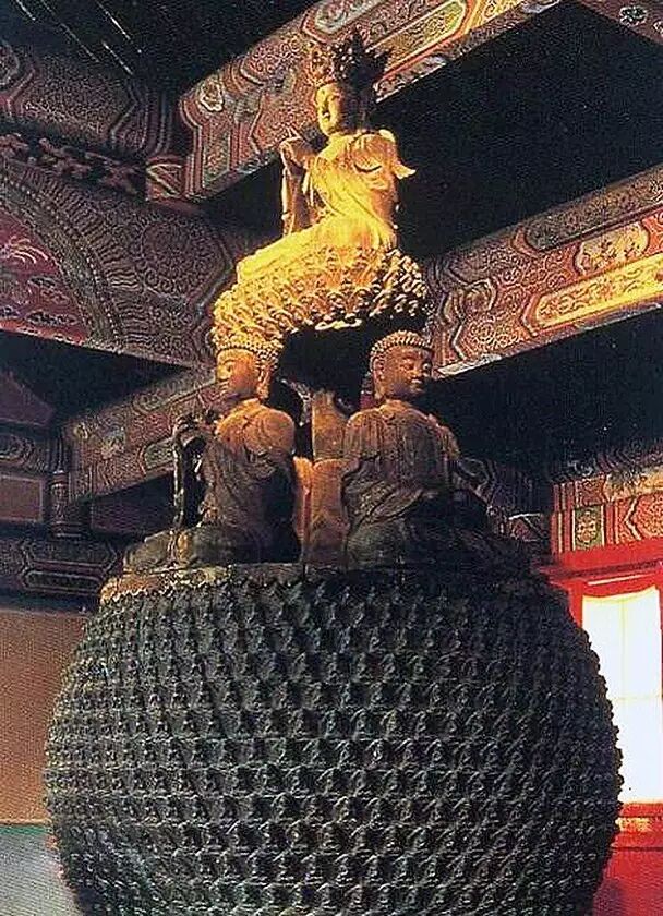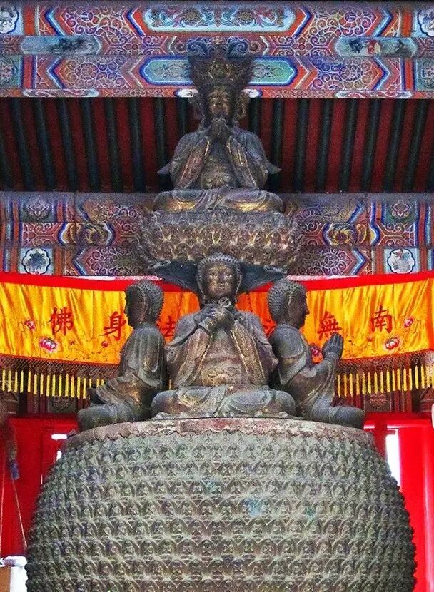 北京法源寺的明代五方佛铜像,由皇家敕建。这尊高大精美的铜像珍贵无比,它反映了明代极度高超的冶炼技术和造像艺术,令人叹为观止。