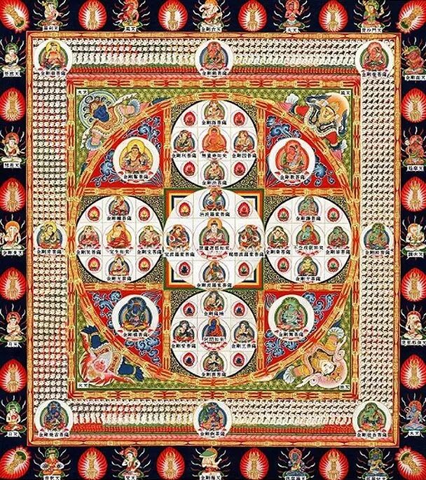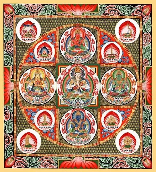 颇具深义的是,以法身五佛为终极究竟,并认为法身五佛隐藏于一切事物之后;并以五佛对应其他诸法,将凡尘与圣境奇妙地结合起来。