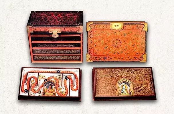 五只宝匣,各对应五方佛,各盛放一挂佛珠。