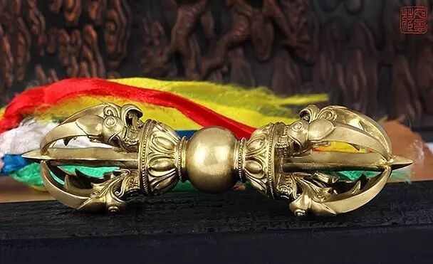 五股金刚杵很好地表现了这种对应——杵一端的五股,表五佛,而另外一端,则表众生的五蕴、五大、五毒、五轮等五种事物,杵的两端都具五股、全然相同,正好令世人醒悟:原来一切万法中,皆藏如来!