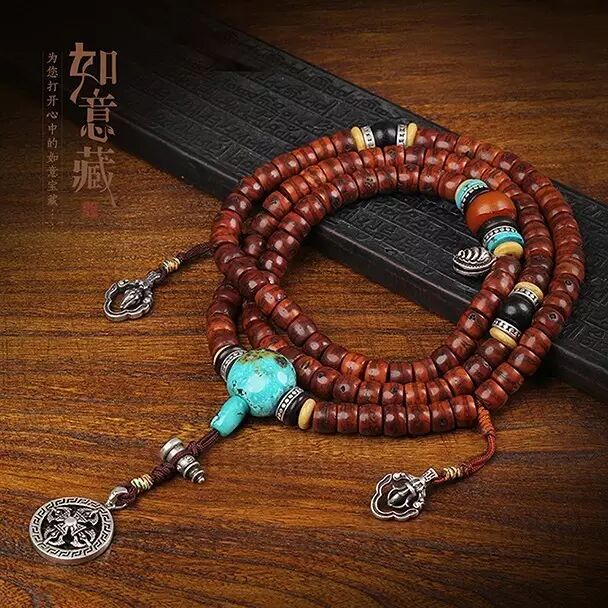 基于五方佛法统,高度重视佛珠的品质,在珠匠的选择、配饰材质的对应、开光加持、数捻修持、形制颗数、戴持等方面,有大量要求。因篇幅关系,此不赘述,请参看笔者有关论述。