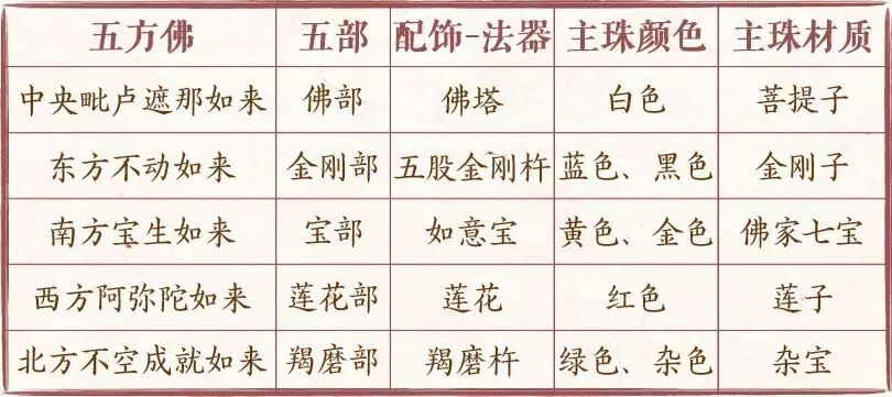 经典规定:北方佛佛珠的主珠材质应为杂宝,即前四佛的佛珠材质,皆可汇集于此。