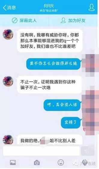 我不死心用新QQ和她说也不理,接着又是删我的QQ,这几天我一直在发信息,打电话,申请再加她都是不理我!