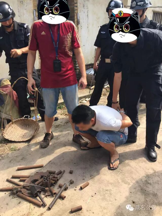 经过多方摸排调查,警方又掌握了新的线索。就在今天上午10时,、巡警等20多名警力展开抓捕,在高州市茂岭村一房屋内抓获犯罪嫌疑人吕某轩(男,27岁),同时在其房间中缴获“潜水鱼雷”7个,转盘式散弹枪组装件两套,对讲机多台。