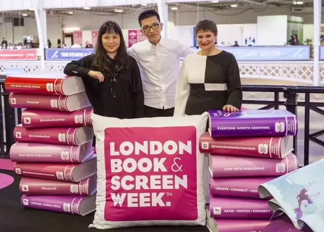黄昱宁(左)、小白(中)在“伦敦书展和荧屏周”现场