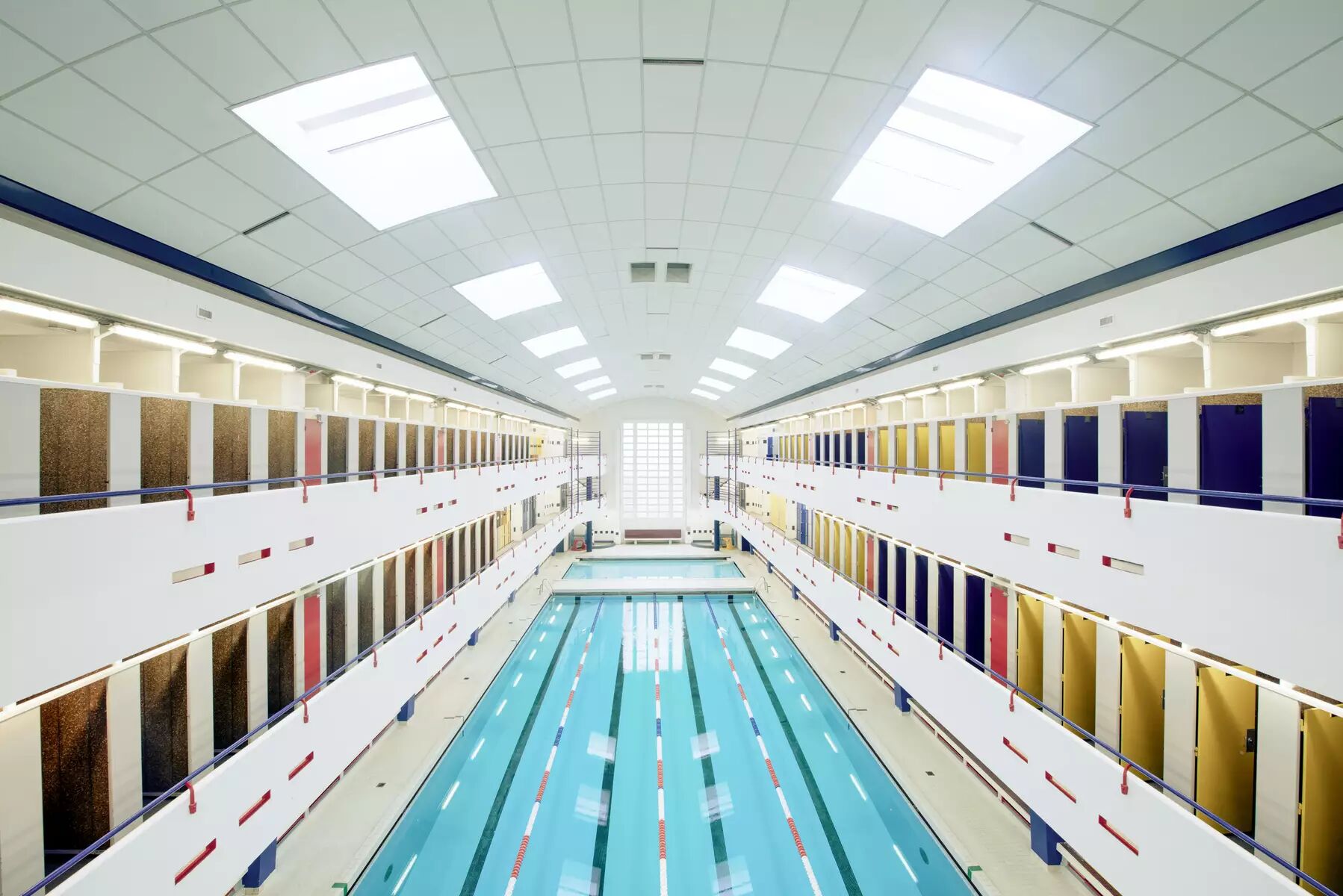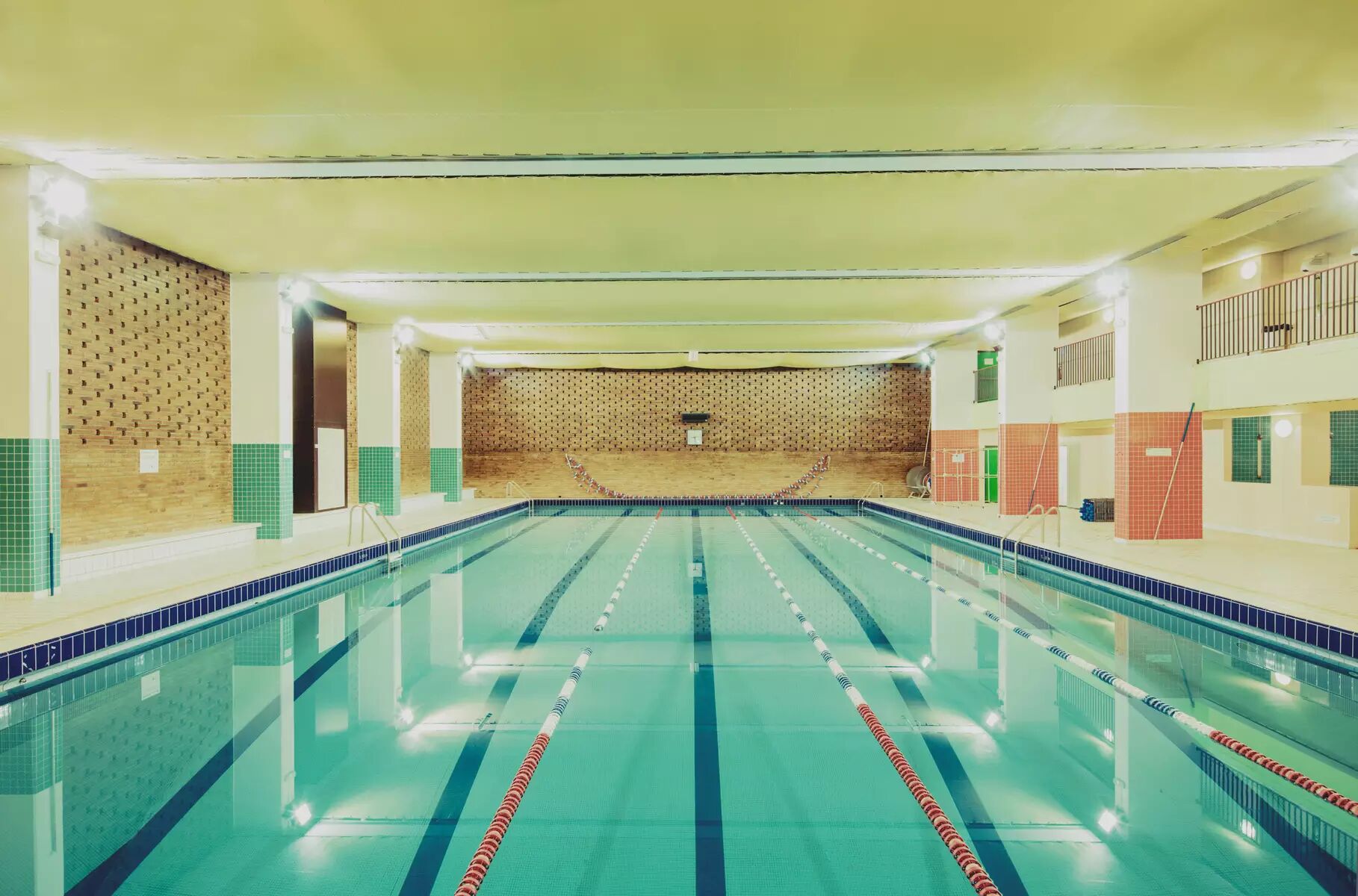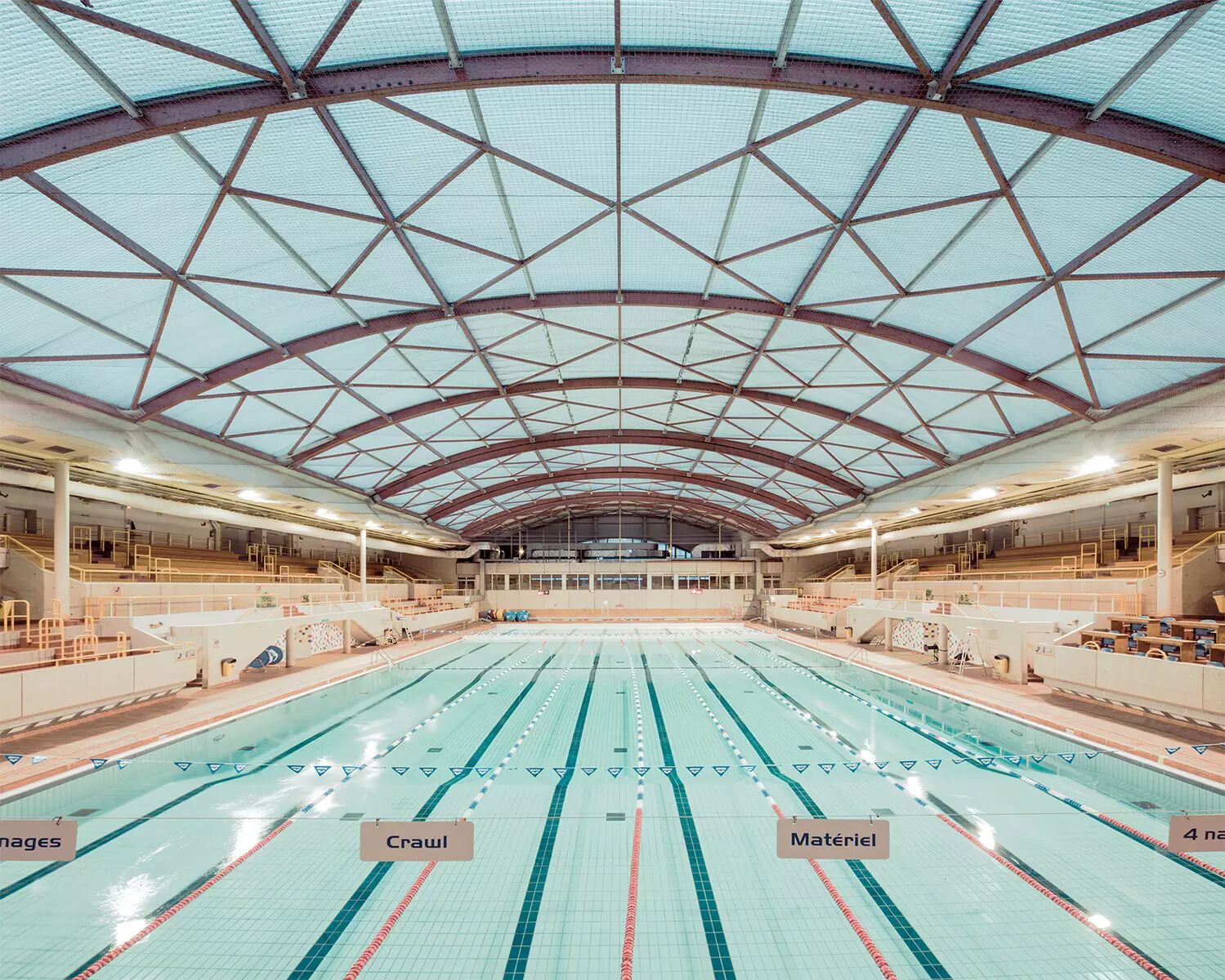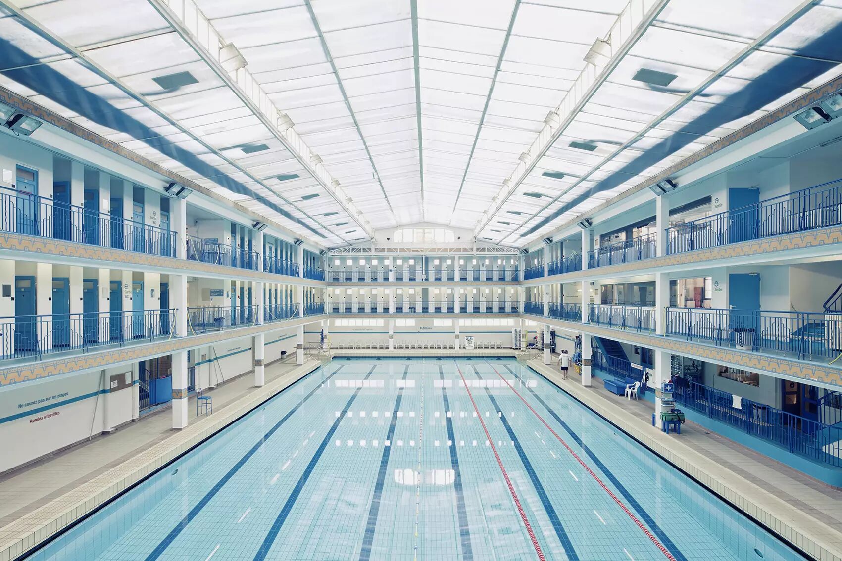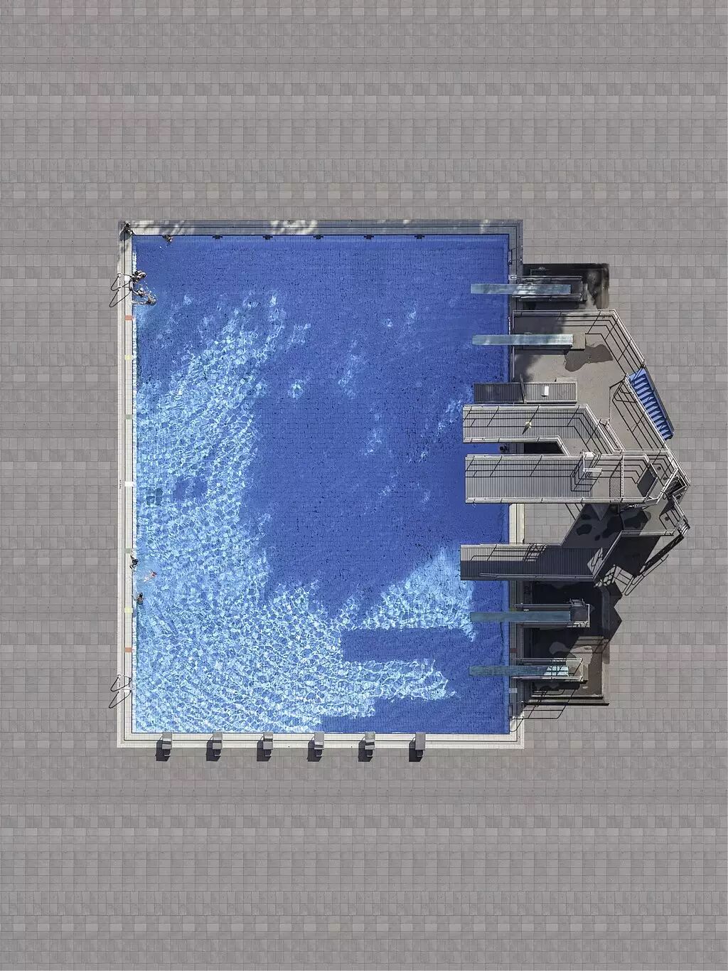 来自于摄影师France Bohbot的游泳池系列项目。所拍摄的对象其实都是一些平常又不起眼的公共游泳池,但在摄影师的镜头下,却显得无比的雄伟而庄重。这个充满着人们的喧哗,弥漫在空气中的氯气,又或是激烈的竞技的场所,在这一刻变成了安静,而永恒的建筑。这样的拍摄角度,能让人把视线集中于游泳馆的室内设计,千篇一律的长方形泳池,搭配着不一样的设计,仿佛让游泳者置身于不同的世界之中。