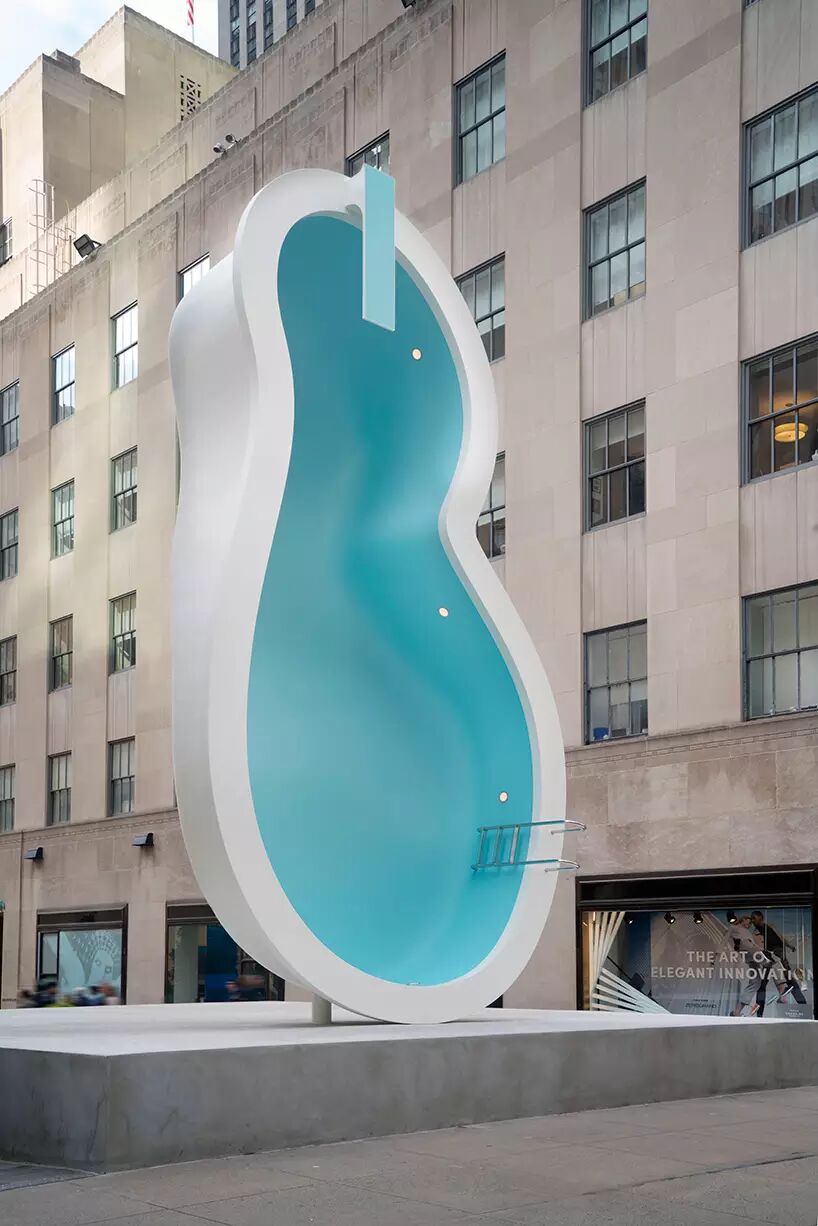屹立在繁华的纽约曼哈顿街头,由艺术家Michael Elmgreen和Ingar Dragset共同设计的巨型泳池雕塑。每一个精心设计与制作的细节:青蓝色的池底,抛光的不锈钢扶梯,明亮的灯光,浅色的跳水板,都生动的还原了一般泳池的真实特征。但如此天马行空的安置方式和周围的环境,令这个设计看起来是如此的不真实而有充满意境。起伏的曲线勾勒出了一只耳朵的轮廓,这个装置名为“梵高的耳朵”,寓意着神话与现实的结合。真实而又不真实的交错,令观赏者产生疑惑,却又能通过驻足观赏,找到自己的答案。