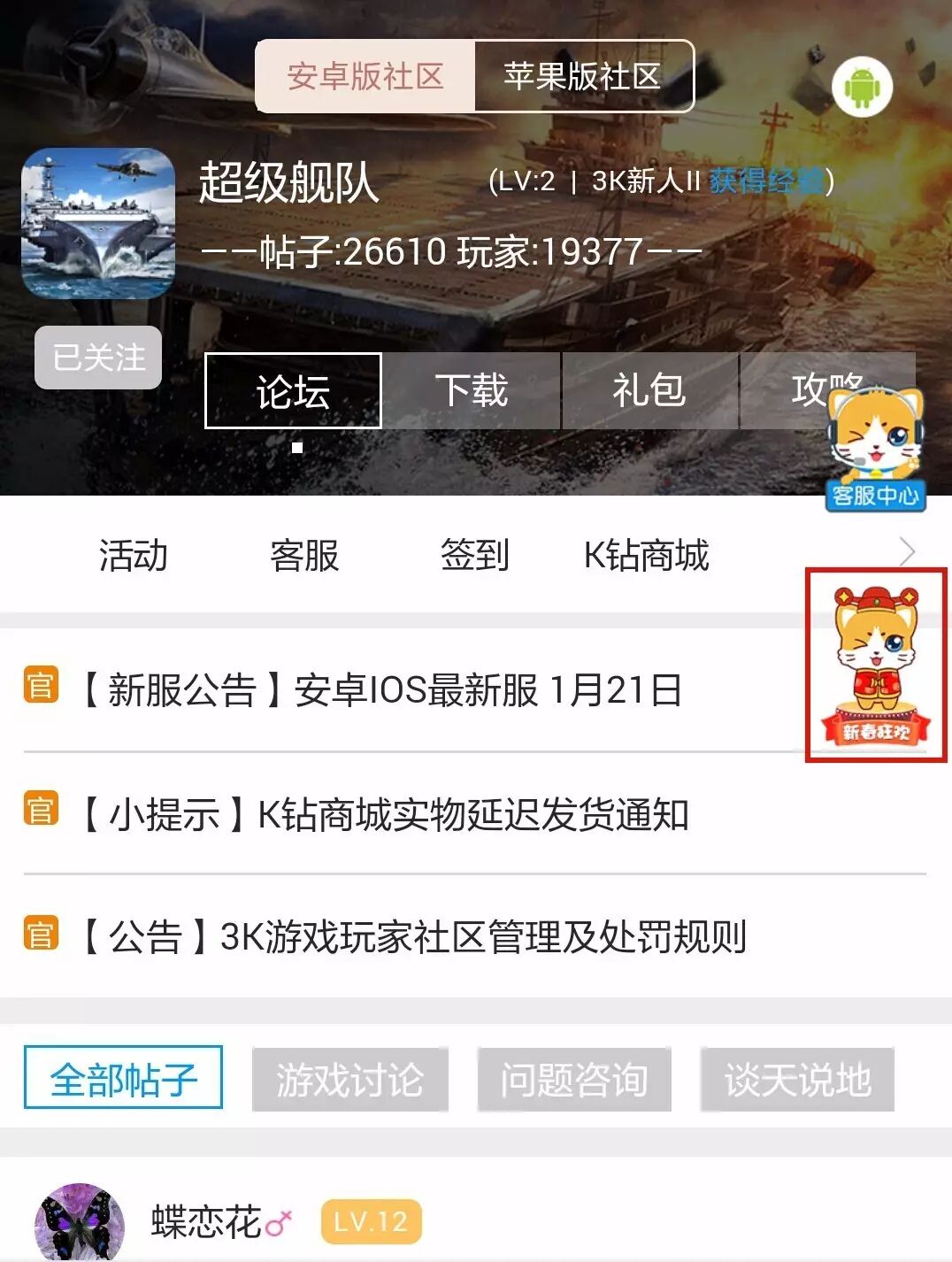 1、点击文章底部左下角【阅读原文】,进入舰队玩家社区,点击“新春狂欢”图标,即可参与活动。