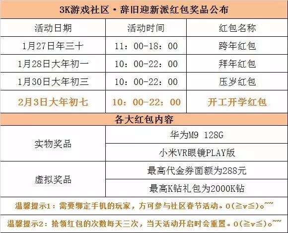 如果因为未填写收货信息或填写错误,导致实物奖励无法正常发放,官方将不会补发任何奖励。(PS:社区新春活动送出的一切实物奖励,均由3K游戏官方包邮!)