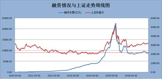 3. 融资余额在2016年10月28日第三次突破9000亿元,随后上证指数上涨了150个点。