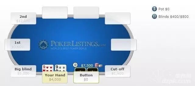 你在线上多桌SNG的后期阶段了。这手牌,桌上弃牌到按钮位置,他全压7500刀。你应该怎么办?