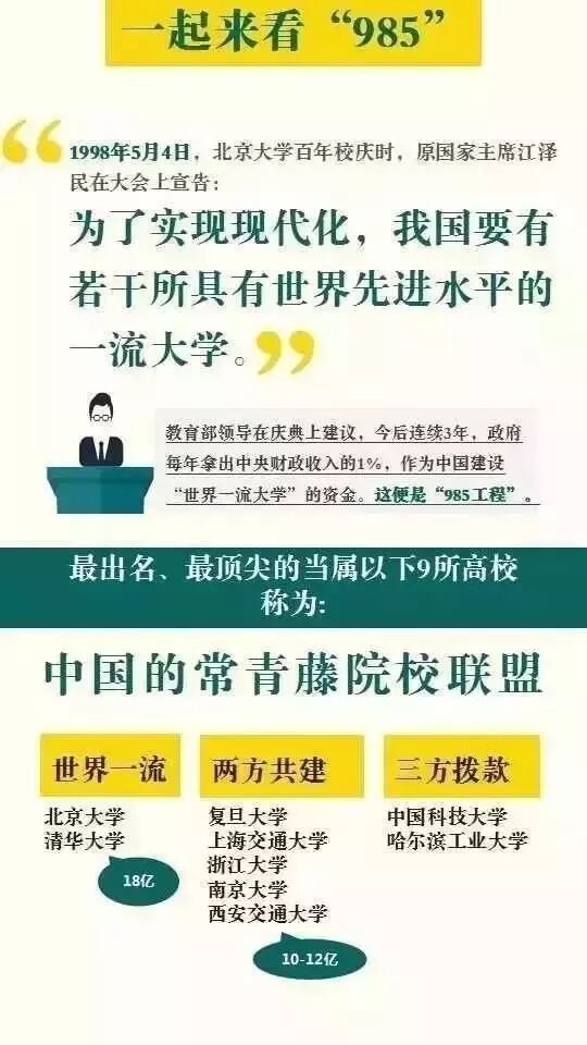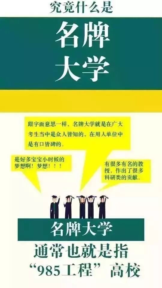 很多高中生在高中阶段对自己心目中的理想大学,并没有一个明确的目标。很多家长对各种名牌大学、重点大学也是傻傻分不清楚!下面这些图,只需五分钟,带你快速了解"重点大学"&"名牌大学"!