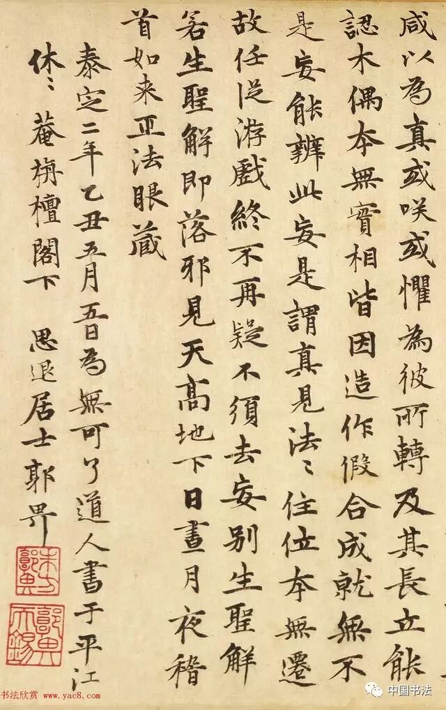 郭畀楷书欣赏《跋赵光辅番王礼佛图》,泰定二年(1325)书,美国克里夫兰艺术博物馆藏。