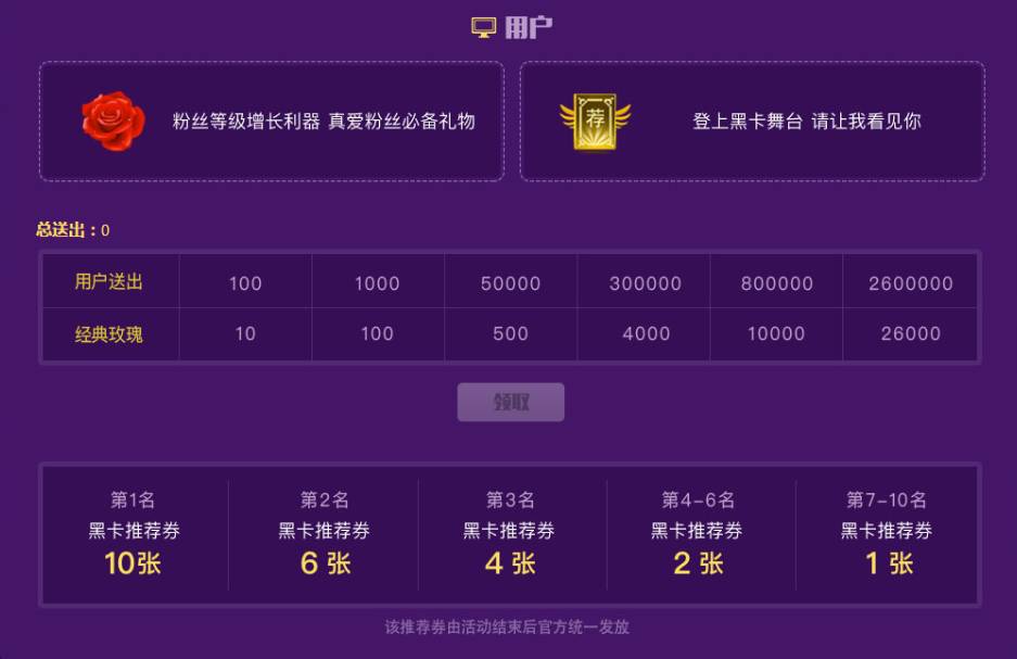 4、累计总榜不清零前十名,用户黑卡推荐劵大放送