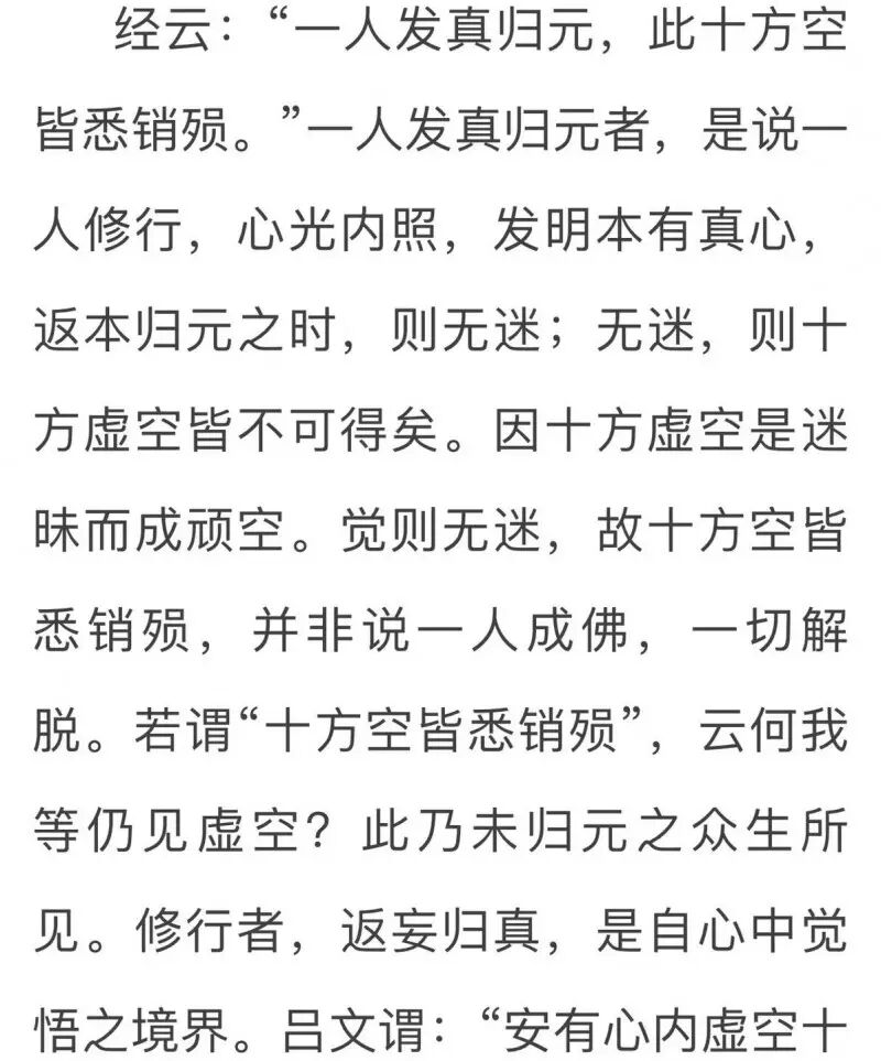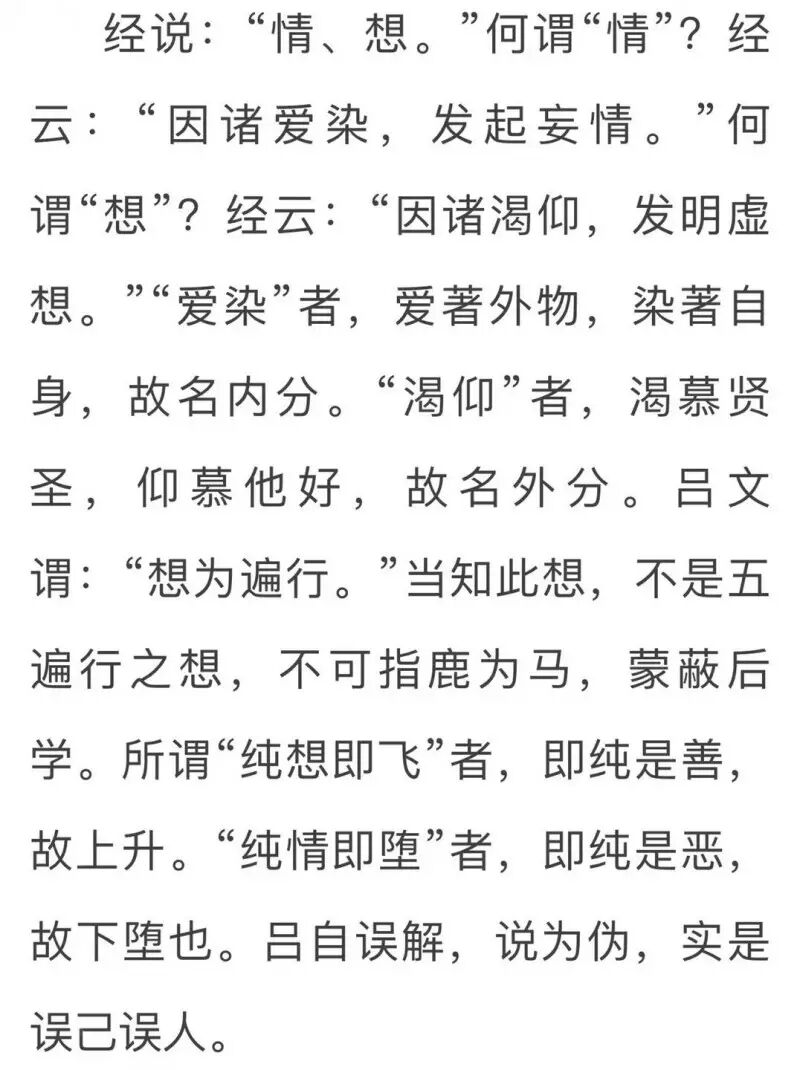 “见闻觉知”,总该六识而言。六识不分别六尘时,故曰:“灭一切见闻觉知。”世人以为不向外尘分别,只观内心,名“内守幽闲”,以内守幽闲便为真心。殊不知内守幽闲,即是分别内法尘。故云:“内守幽闲,犹为法尘影事。”非是说:“灭了意根。”吕误解,是吕自成戏论,非经戏论也。