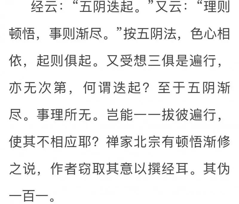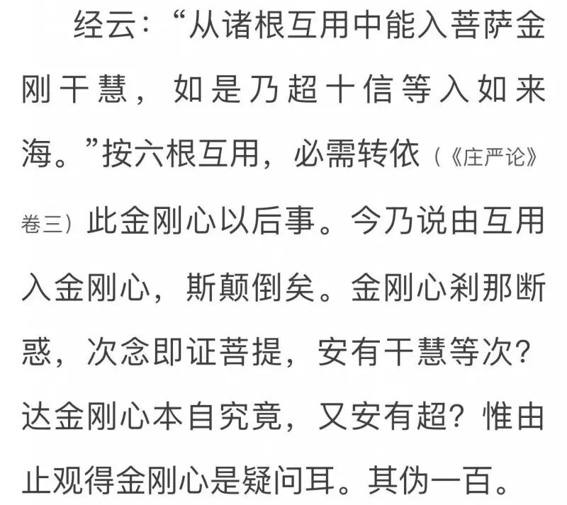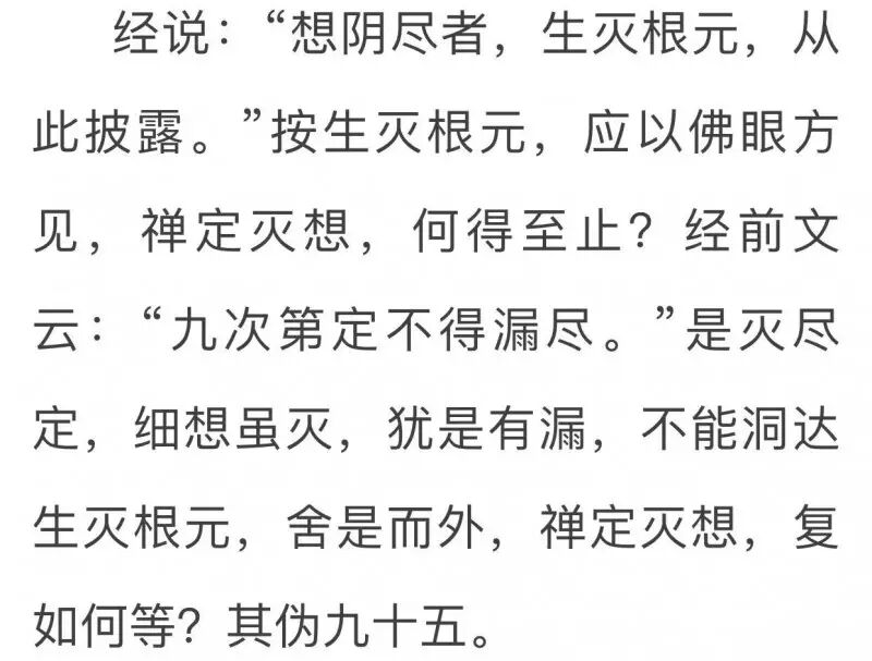 经云:“纵灭一切见闻觉知内守幽闲,犹为法尘分别影事。”按见闻觉知乃六根功能,根尘相对而有分别,既灭意根(知),何有法尘分别?若犹有知内守幽闲,徒成戏论,其伪十七。