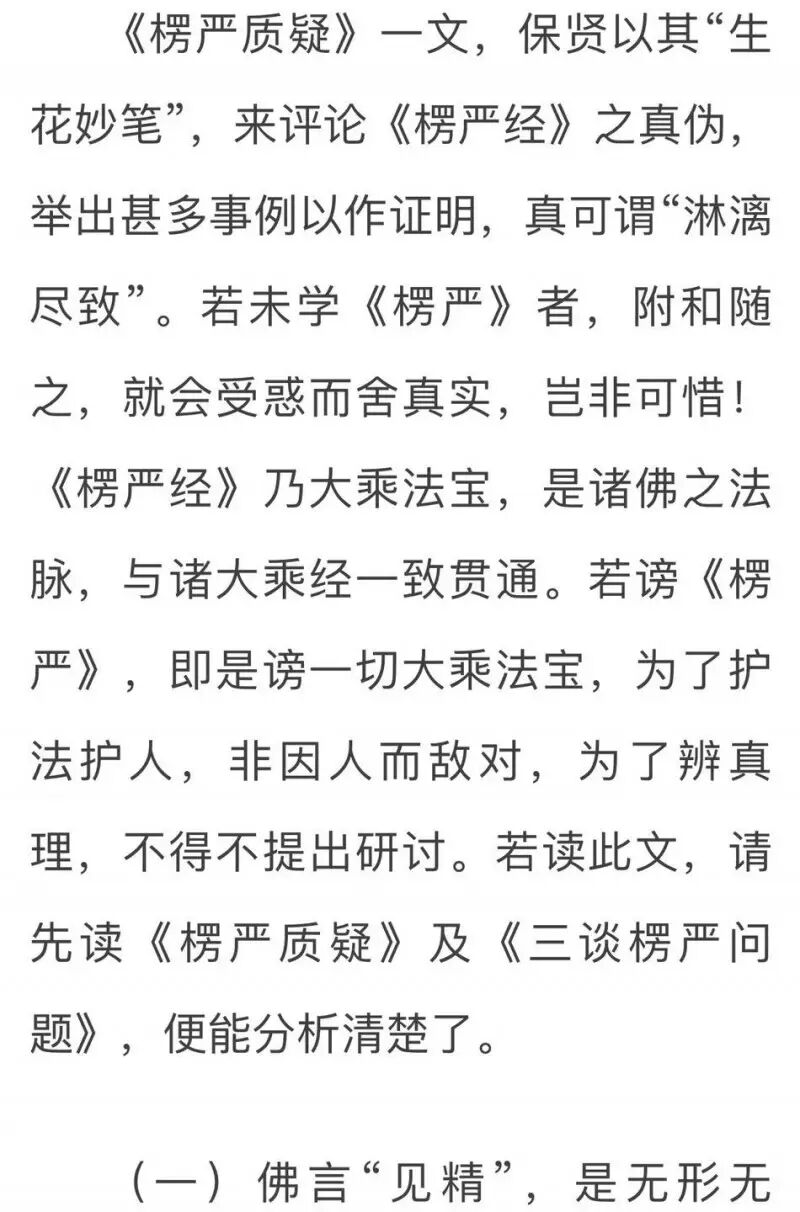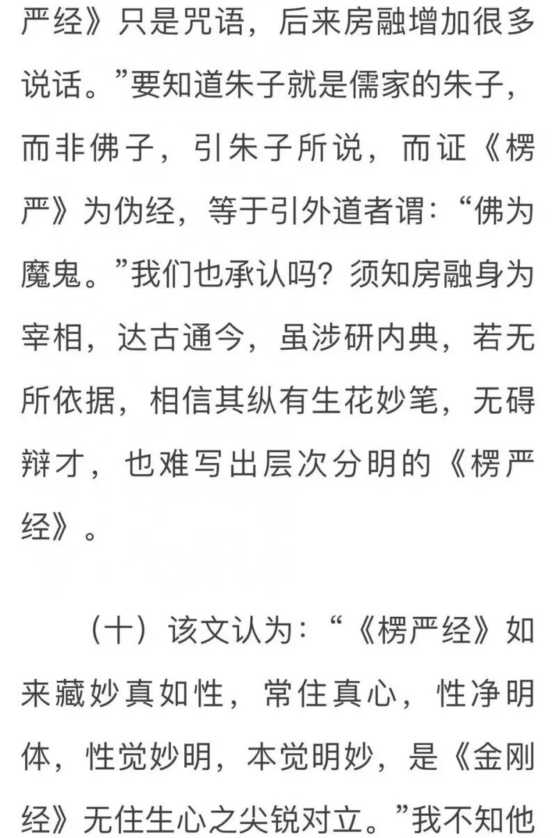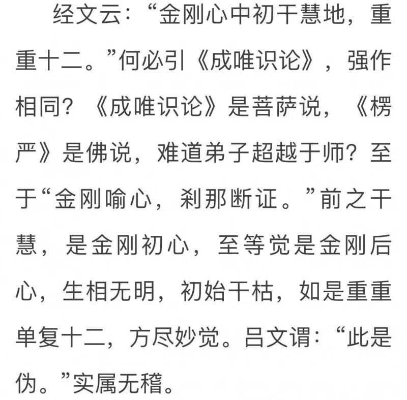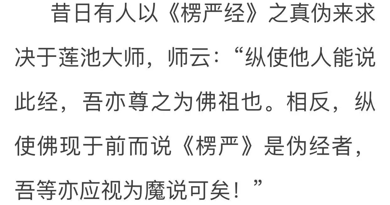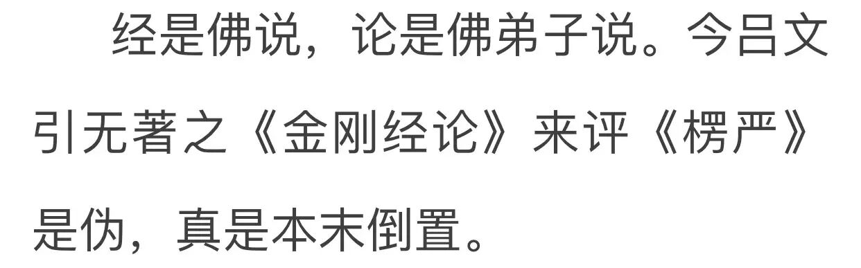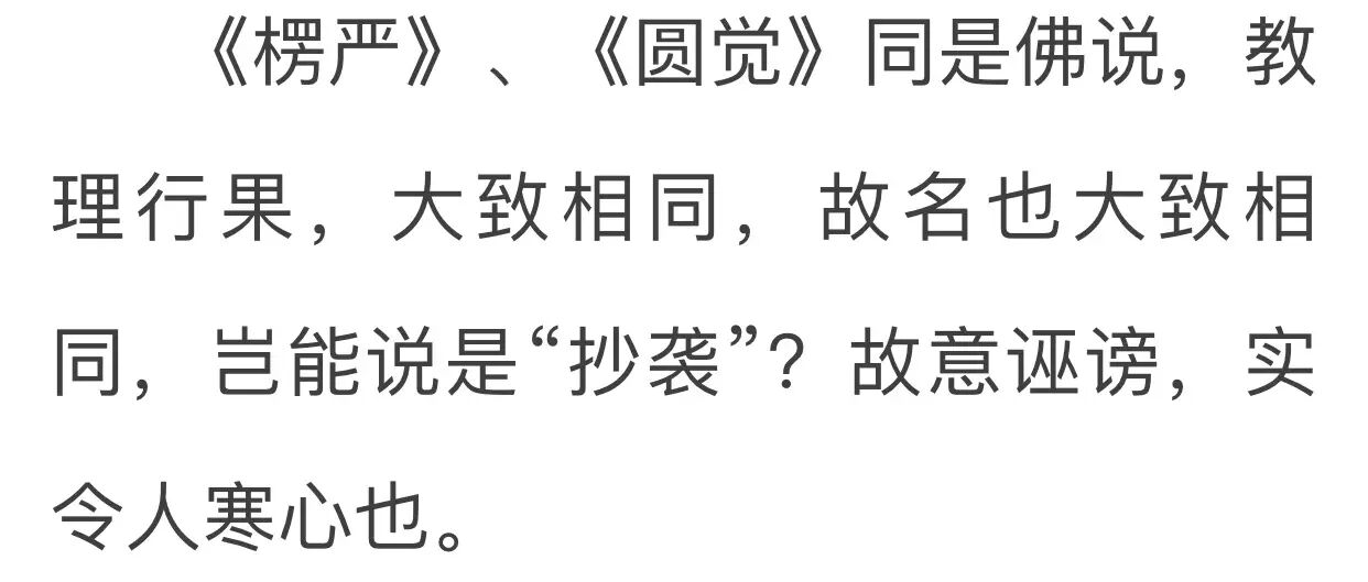 诸大乘经,皆以一实相理,即证其说。诸小乘经,以三法印,印定无误。试问《楞严》何处乖违大小乘印?吕澄全以是非之心、庸俗之念、妄想分别,刻意制造过失,引人随落深渊,诚乃罪过无边!况经四依说:“依法不依人,依义不依语。”无论何人所说,只要合圣教量,皆当依教奉行。如指经之出处与历史不符,窃取《深密》,《圆觉》等经,内含杜撰,答问有出入等,此皆是芝麻绿豆事,不关痛痒,其理是否有背佛说,应为大前提。