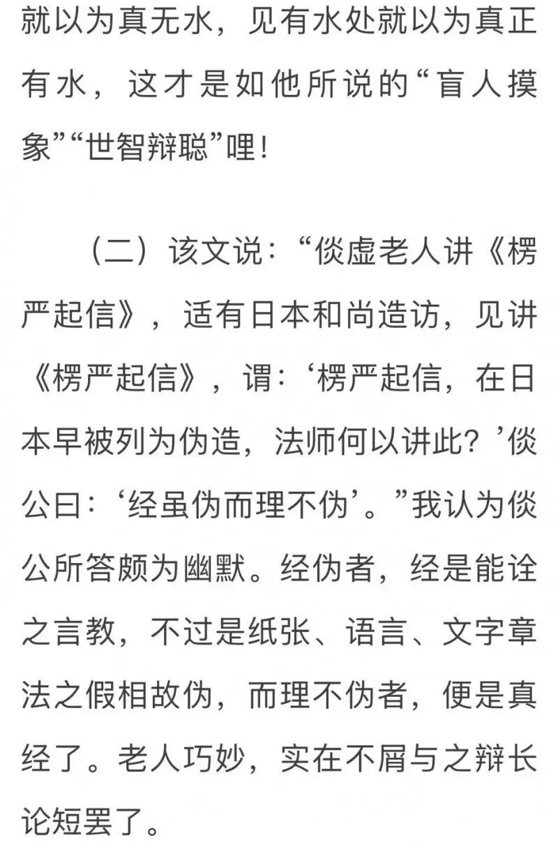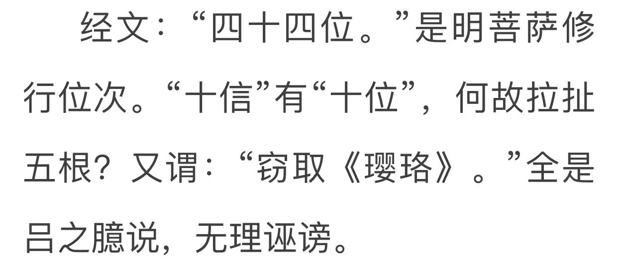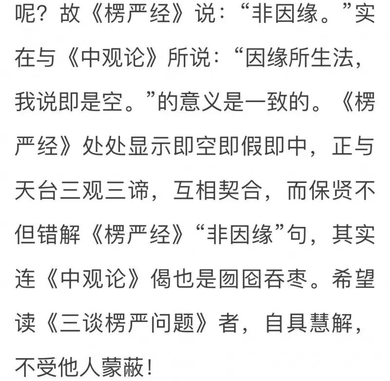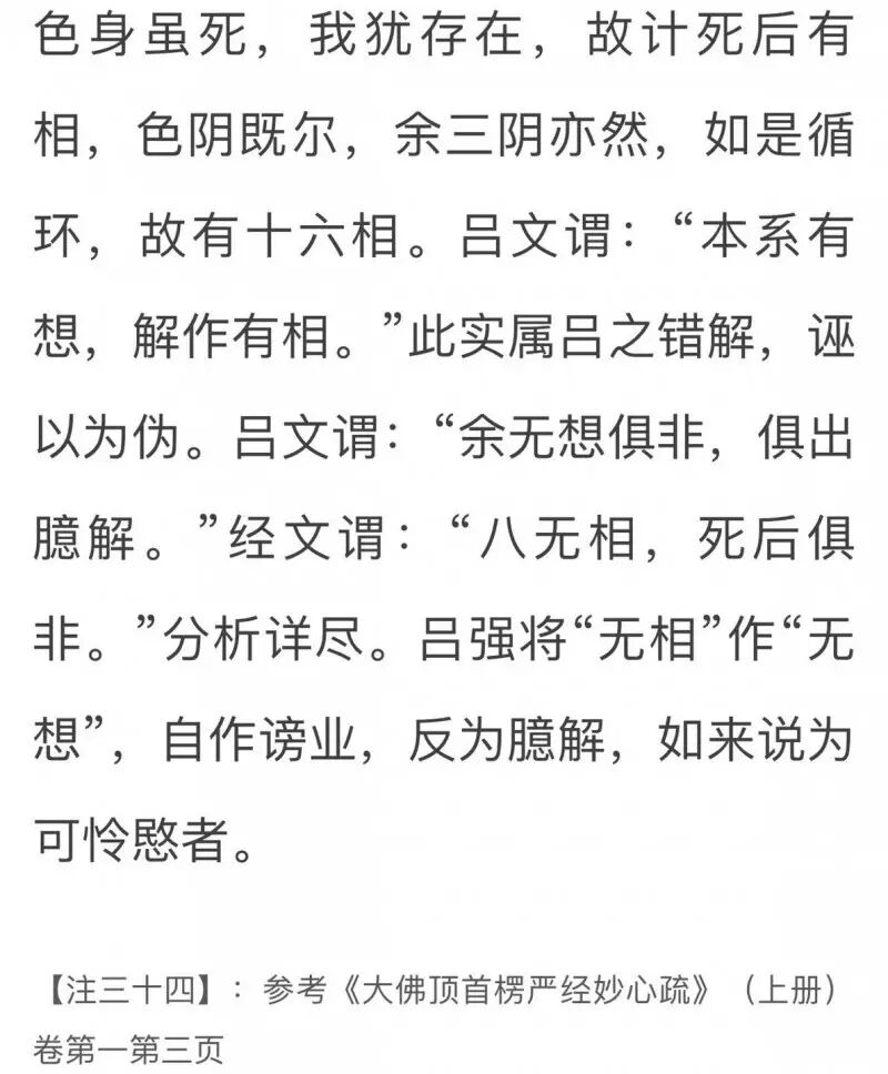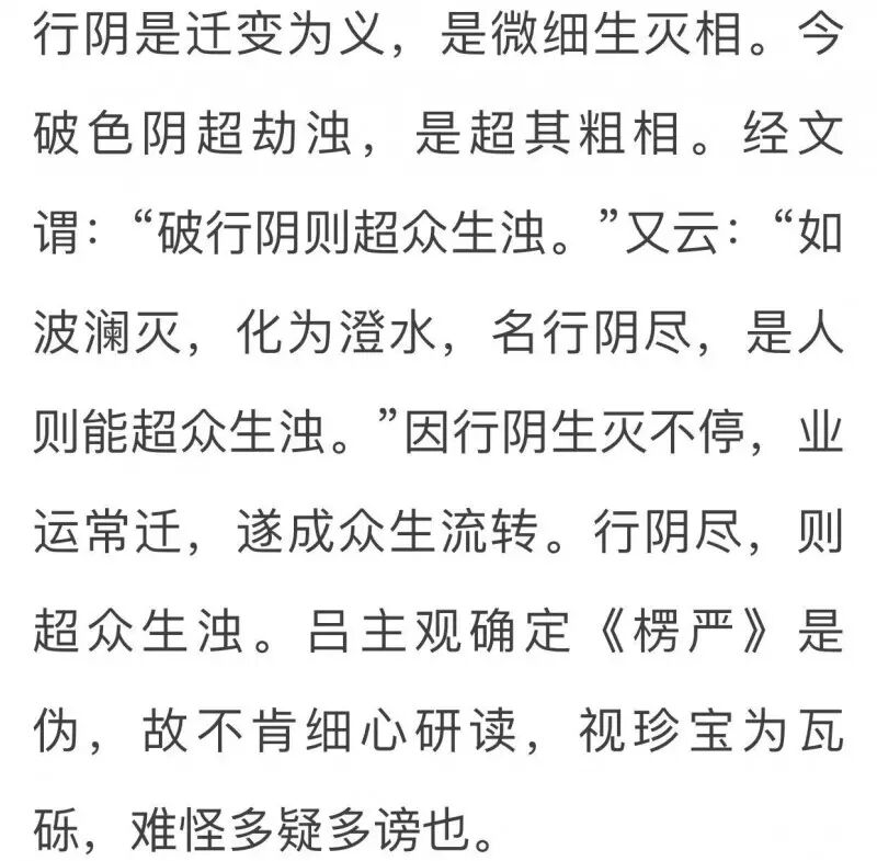 诸大乘经,皆以一实相理,即证其说。诸小乘经,以三法印,印定无误。试问《楞严》何处乖违大小乘印?吕澄全以是非之心、庸俗之念、妄想分别,刻意制造过失,引人随落深渊,诚乃罪过无边!况经四依说:“依法不依人,依义不依语。”无论何人所说,只要合圣教量,皆当依教奉行。如指经之出处与历史不符,窃取《深密》,《圆觉》等经,内含杜撰,答问有出入等,此皆是芝麻绿豆事,不关痛痒,其理是否有背佛说,应为大前提。