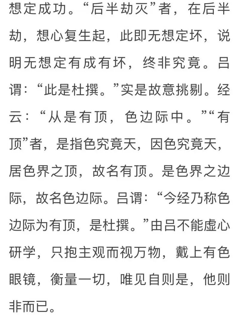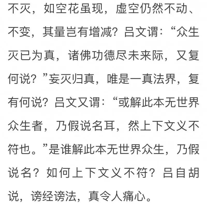 吕文谓:“如来藏心妙真如性,实则法性假名也。法性之常,谓无我理,恒不变易,”既言恒不变易,岂非是常?“法性”即是性净明体。“性净明体”清净无相,故性净,“心性灵明”,故说明体,并非别有体可住也。今吕自误解,反谓臆想立言,良可悲也!