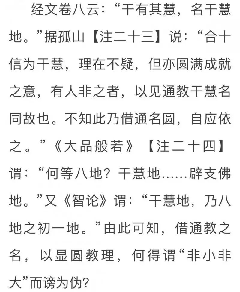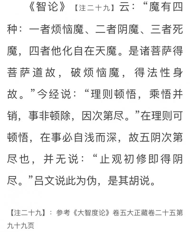 经乃佛说,论是菩萨说。《楞严》《圆觉》同是佛说,岂可谓窃取《圆觉》之文?又经说在先,论说在后,焉能说“本诸《智论》”?查《智论》【注七】卷五只有说“三昧”,乃至说:“略说则有一百八三昧,初名首楞严三昧,乃至虚空不著不染三昧,广说则无量三昧。”并无三摩呬多、三摩钵底之字句。按《楞严经》说奢摩他,此云止,即是定。三摩,此云观,即是慧。禅那,此云静虑,即止观不二,何有“但止无观”?吕文云:“岂有但止无观而称奢摩他?”此实乃诬谤也。