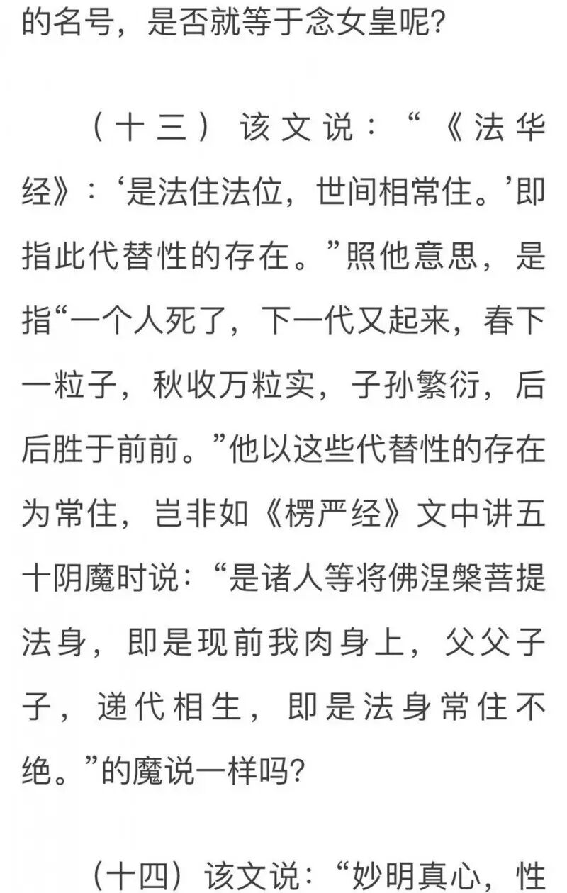 经说:“无始菩提涅槃元清净体,则汝今者识精元明能生诸缘,缘所遗者。”按佛法有自性涅槃而无自性菩提,无始之言,实为臆造。元清净体,应指法性,法性为法为依,非能生法。今说能生诸缘(经卷二,诸缘谓色心),亦出杜撰。其伪十五。