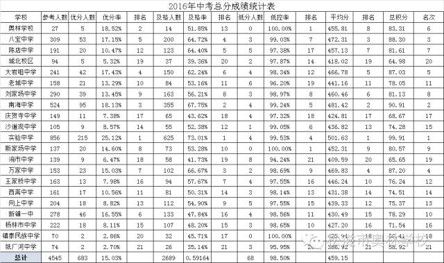 松滋市2016年中考全市排名