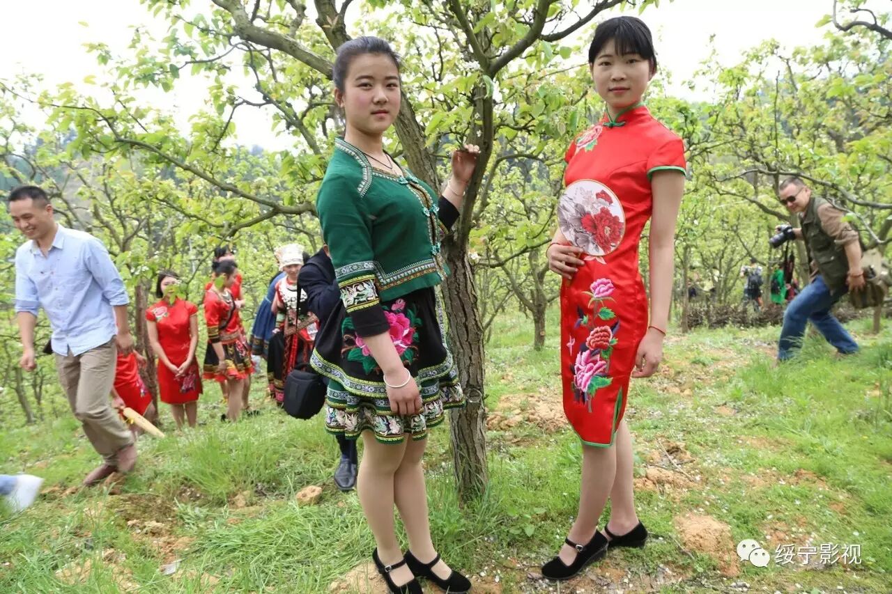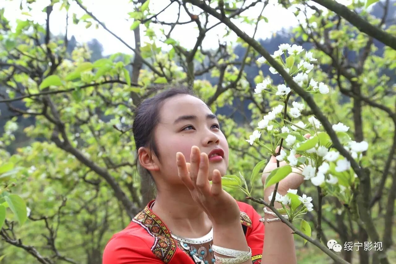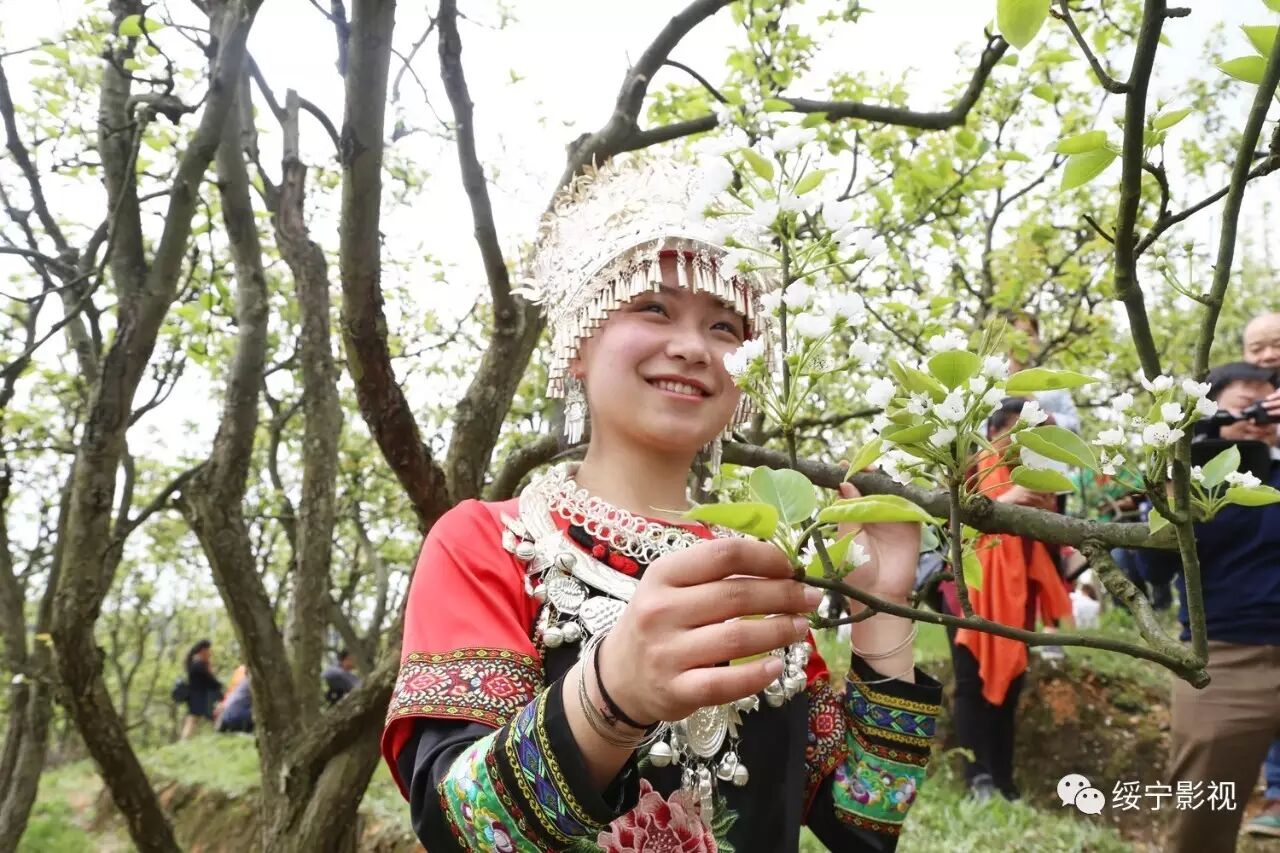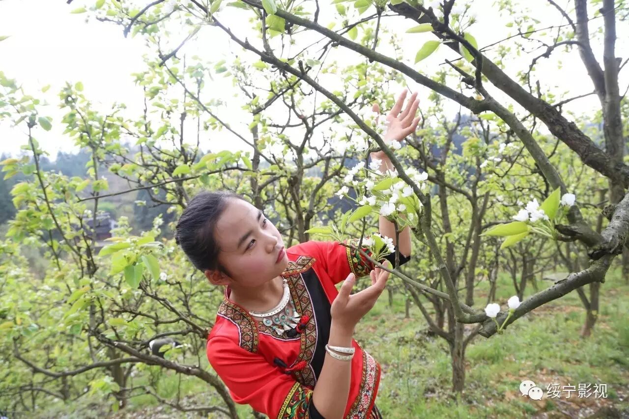 梨花园里春光明媚,绥宁县职业中专的美女帅哥们身着各式各样原创的民族服装行走在梨树间,给绿叶、白花抹上了色彩缤纷的颜色,煞是好看!