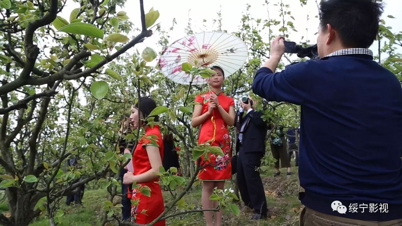 上午,“梨花服装秀”倾情演绎,一群身材妙曼的青春少女和帅气的少年,身着款式各异的美丽服装,与梨树相倚相偎,与梨花脉脉含情。