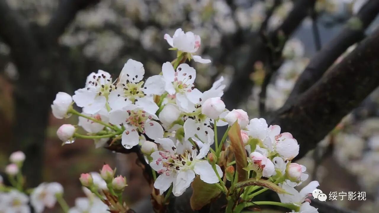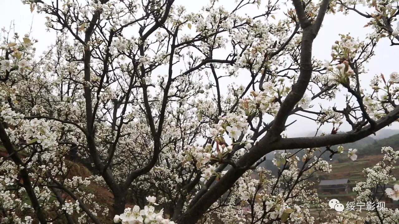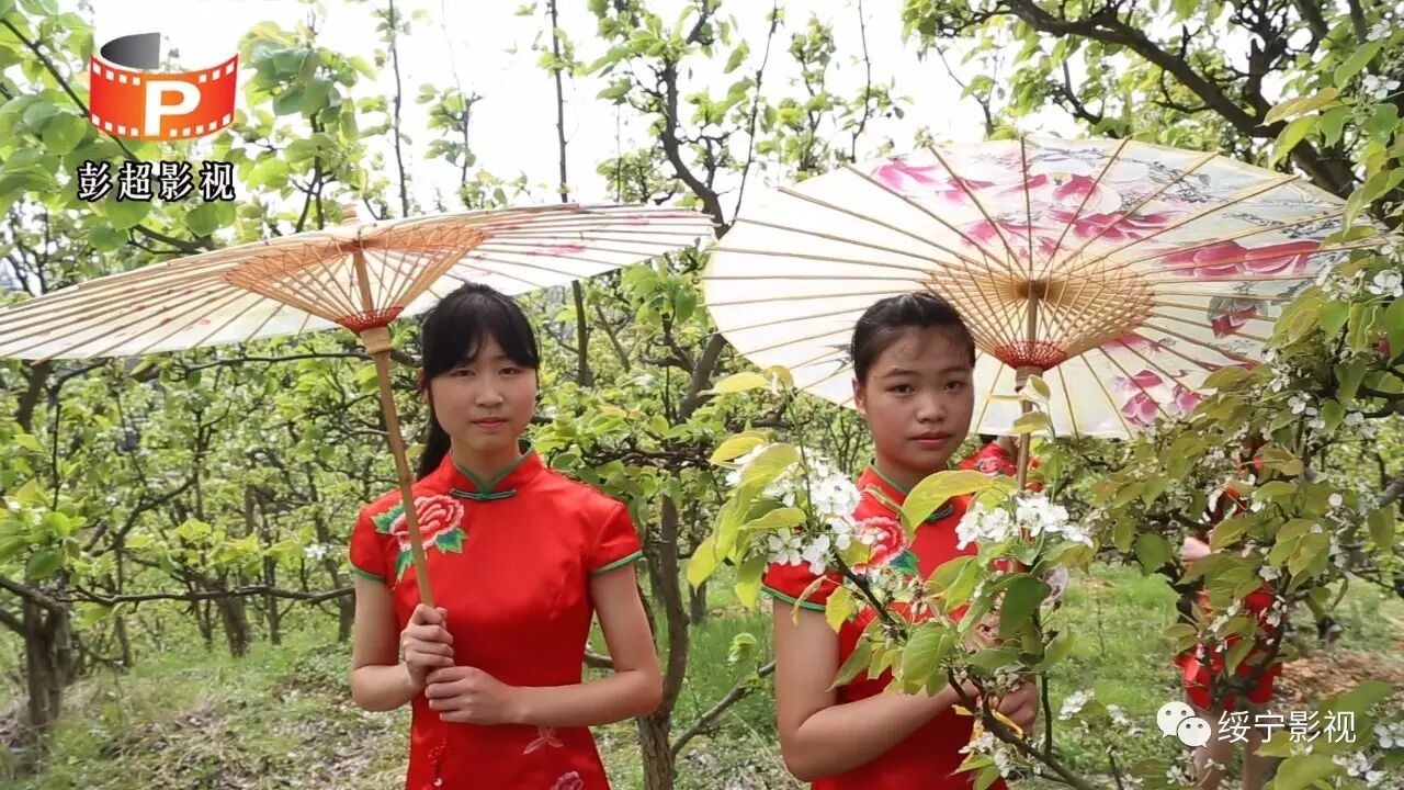 一身红妆,一片梨树,定格在眼前,想留住这美丽的景色就保存它。