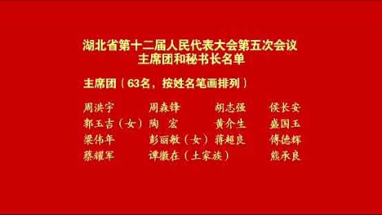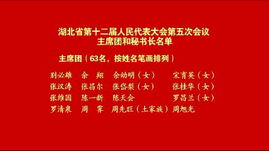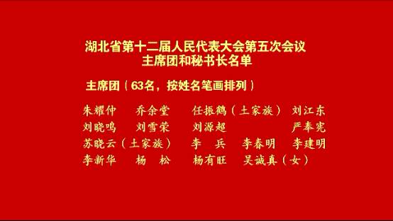 主席团会议推定蒋超良、陈一新、于绍良、李春明、田承忠、周洪宇、张岱梨、尹汉宁、王玲、王建鸣、乔余堂为主席团常务主席。