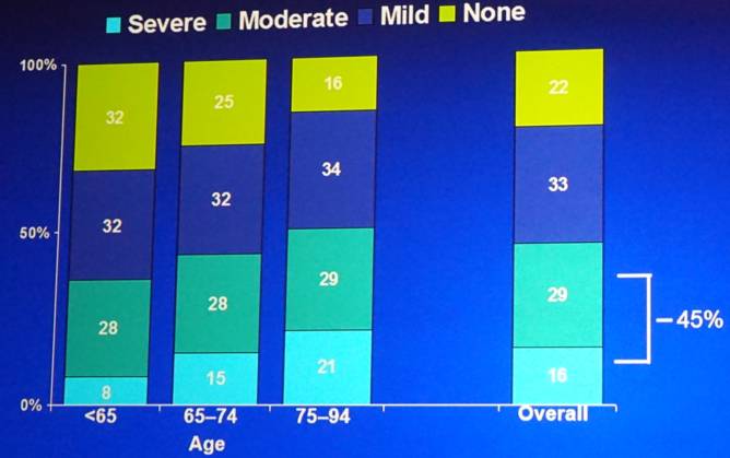 55岁以上人群中,男女卒中风险分别为1/5和1/6。65岁以上人群中,男女痴呆或卒中风险分别为1/2和1/3。