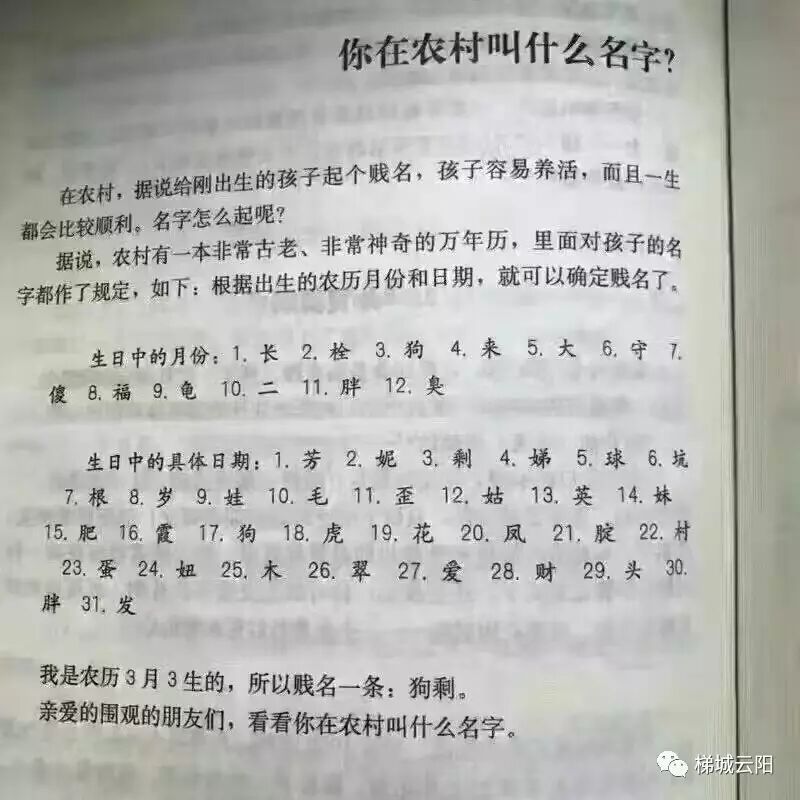 梯小编老家基本人人都有小名!