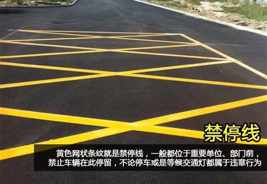 在路上看到黄色网状条纹的话,就要注意了,它们一般都位于重要单位、学校门前,禁止车辆在此停留。