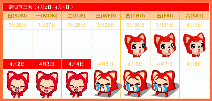 清明节:4月1日(周六)调休,上单周周一的课程;