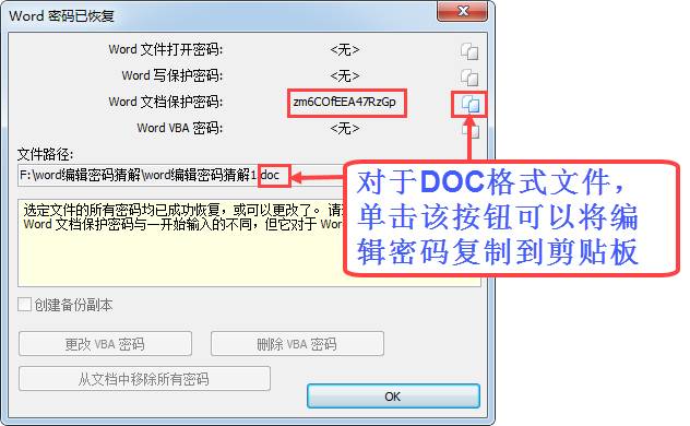 对于DOC格式文件,可以猜解出来编辑密码