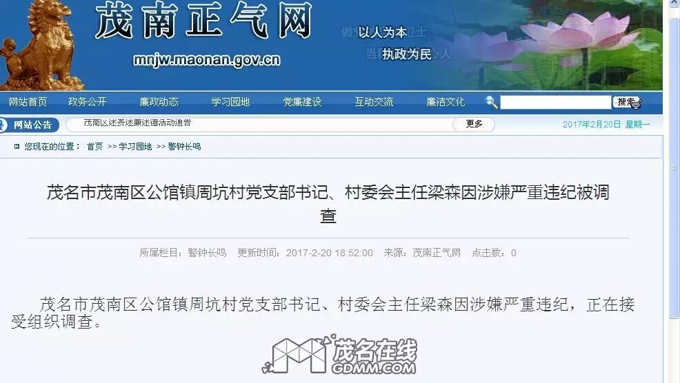唐兄讲故事博得掌声,是因为他懂得把持,而下面这位小官仁兄,就因为在法纪面前把握不住而出了事故。据“茂名正气网”消息:茂名市茂南区公馆镇周坑村党支部书记、。
