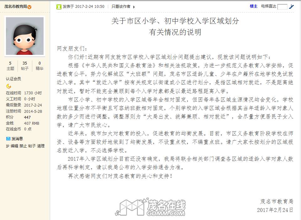养育一个孩子不是易事,家长除了关心她的健康成长,还得关注TA读书的事。上周,网友“maomingboy ”就,引起大家对“就近入学”的讨论,教育局回复如下: