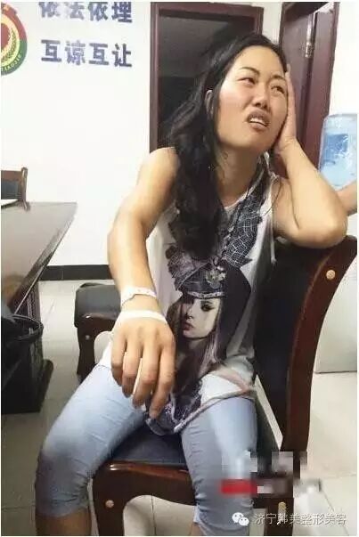 长沙亚韩医学美容医院的院长以及两位负责人来到长沙侯家塘派出所的调解室里,在派出所民警的协调下,与杨丽华进行协商解决。