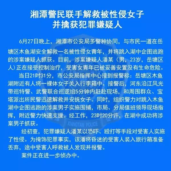 不管怎么说,妹子没有生命危险就是万幸,小编在这里要提醒各位小伙伴,晚上不要轻易单独出行,尤其是女孩,一定要结伴同行,而且最好不要到人烟稀少的偏僻地方,要提高警惕,保护好自己!最后,为湘潭的警察和热心的市民们点赞!
