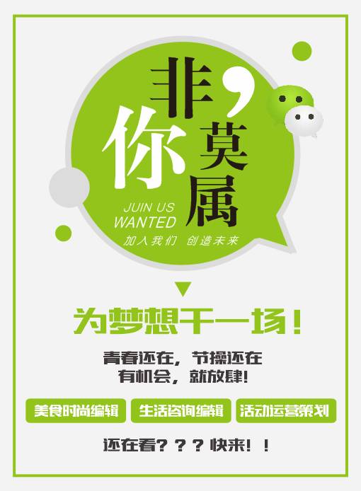 年龄30岁以下,爱吃,爱玩,爱时尚,爱网络,爱码字...学历不限,只要能力足够;性别不限,美女优先;