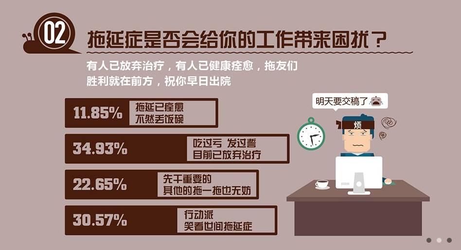 看完这支视频,是否依稀的看到了自己的身影?腾讯曾做过一个在线调查,来看看大家对拖延症的态度: