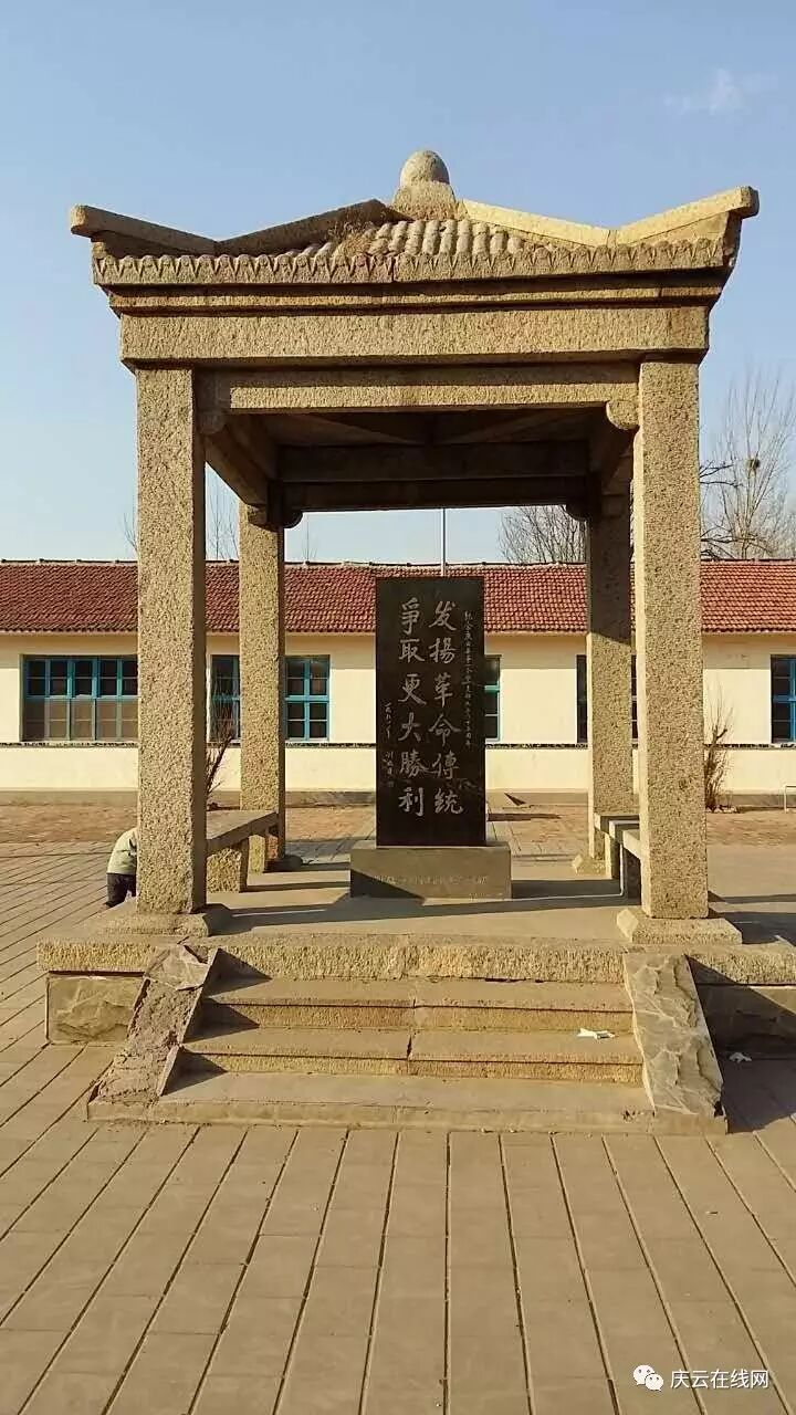 ,中间有一块碑,碑是1991年写的内容,下面是宁津当时的一个厂子刻的字.....两棵大树在两旁,威严庄重!