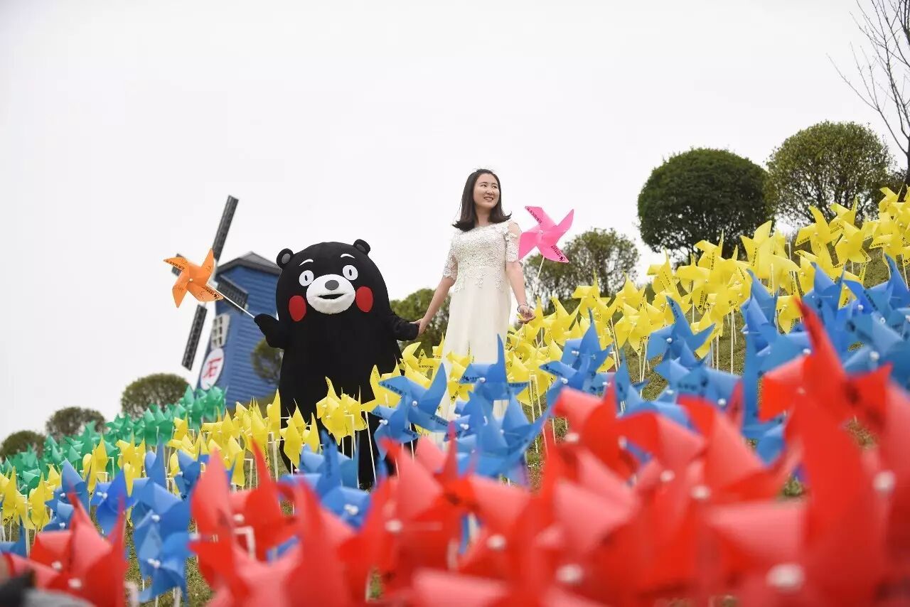 开幕式现场欢乐无比,载歌载舞,寻梦风车里的童年记!连“熊本””皮卡丘“”拓爷“等都来到现场与游客一起畅游”风车王国“,场面搞笑而温馨!