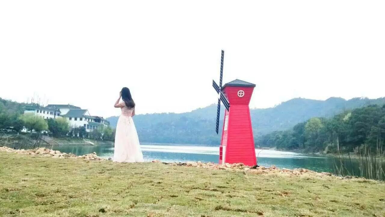 湖光山色中那典雅的大风车,迎着徐徐的清风悠悠转动,唯美而浪漫,令人有置身荷兰“风车王国”的惊喜!