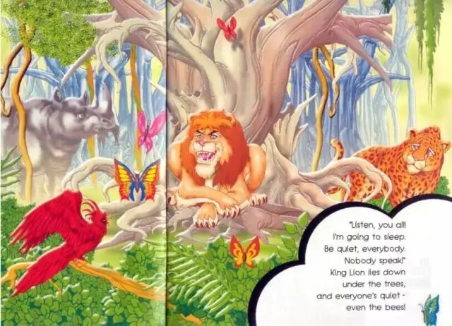 狮子王躺在了一棵大树下面,所有动物们都保持安静,包括蜜蜂。