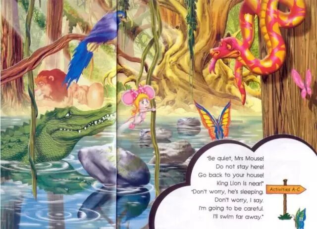 “保持安静,老鼠小姐!别待在这儿,回到你的房子里去吧!狮子大王就在附近。”