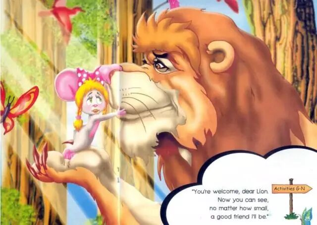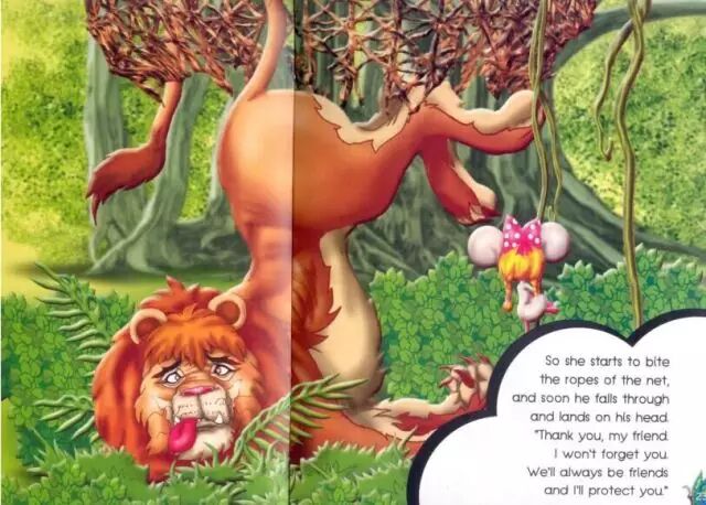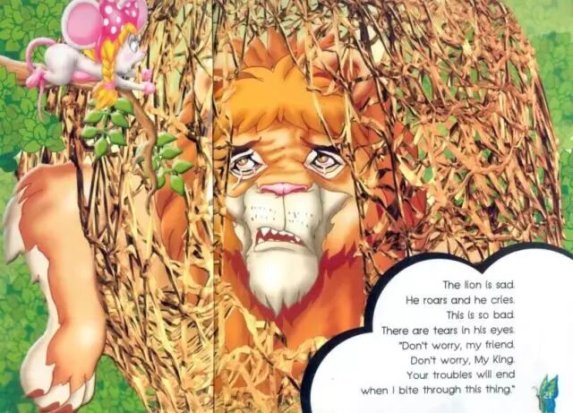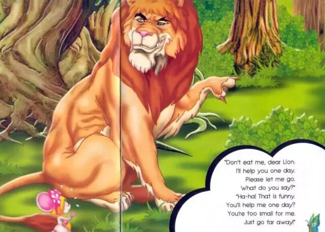 当老鼠说自己有一天会帮到狮子时,狮子觉得简直是个笑话。在他看来,老鼠太渺小了。结果,当自己被困时,就是老鼠救了他。