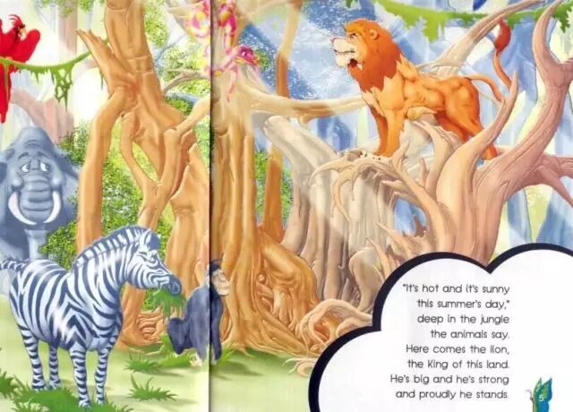 正在这时候,狮子走过来。他是这片领地的大王,他又高大又强壮,昂首挺胸地站着。