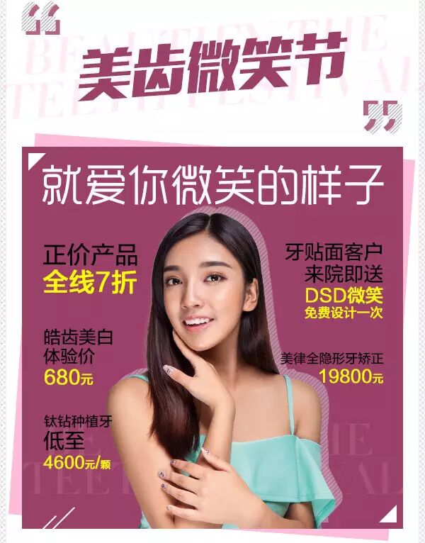 变美项目:纳米炫薄牙贴面、皓齿美白、美律牙矫正、钛钻种植牙