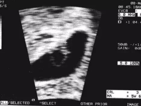 经阴道超声最早6周,经腹超声最早7周可以见到胚芽及胎心搏动。胚芽径线在2mm时候常能见到原始心管的搏动,B超中表现为卵黄囊一侧的增厚部分。出现胎心搏动可确定为活胎。